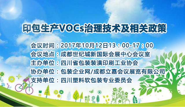 由四川省包装装潢印刷工业协会主办,并由成都立嘉会议展览有限公司协办的“VOCs治理技术及相关政策”会议,将于展会开幕当天在5号馆会议室举行。会议由四川塑料软包装专业委员会高级顾问周久宁先生以及立嘉会展公司郭华女士共同主持。四川省包装装潢印刷工业协会、塑料软包装专业委员会、四川省及成都市环保部门等政府相关部门及协会各会员单位参加。来自通源、通泽、华鹰的技术专家将围绕印包生产VOCs治理技术及相关政策进行技术交流、案例展示,并将围绕VOCs治理具体措施和当前彩印行业面临的困境应对办法展开专题讨论。